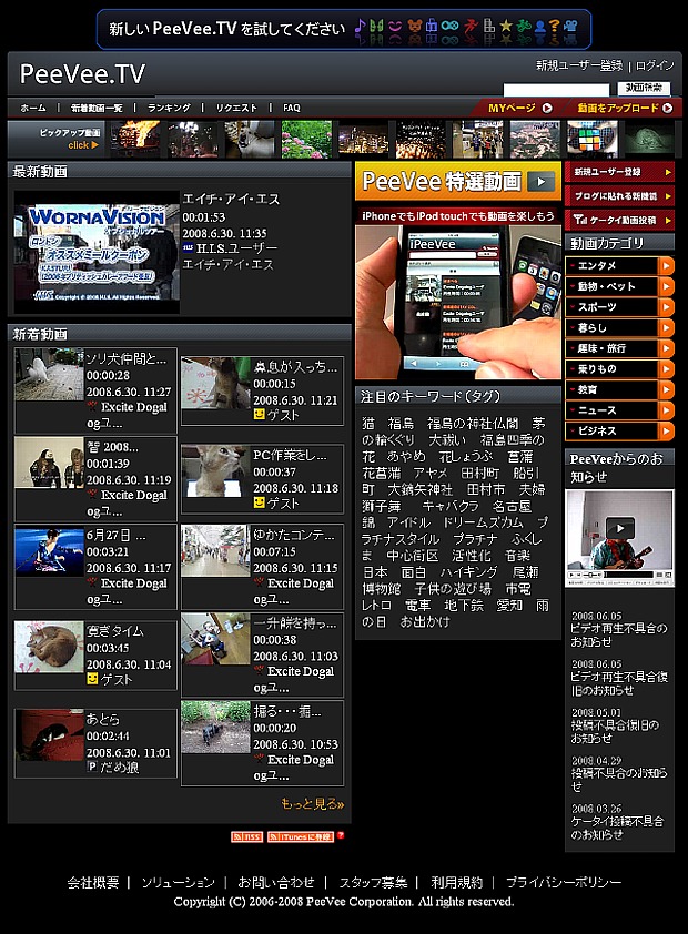 あとPeeVee.TV (ピーヴィー)は最初っから、